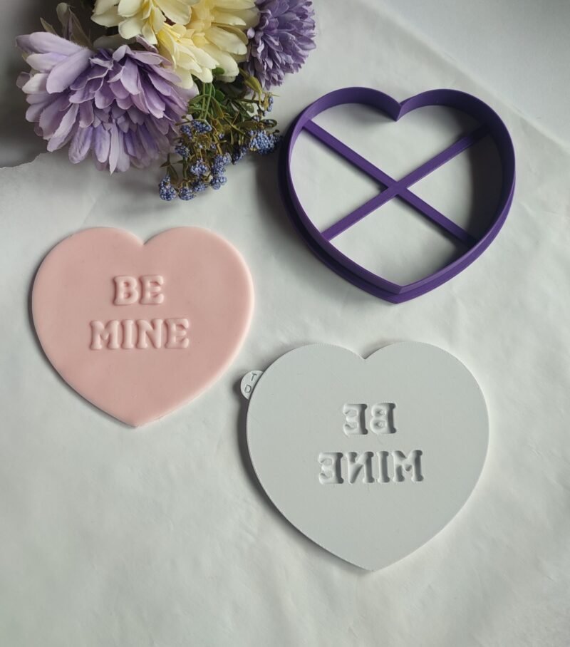 Το Be mine αποτελείται από 1 cutter (κουπάτ) και μία ανάποδη σφραγίδα (debosser). Αρχικό μέγεθος 98x90mm.
