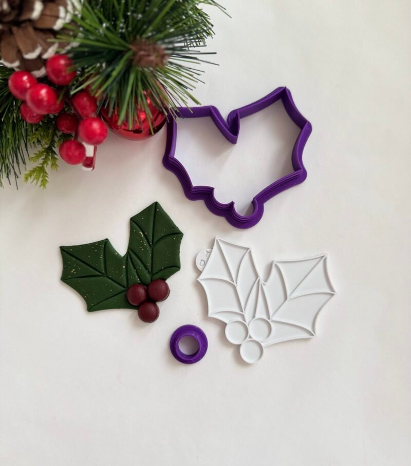To Christmas mistletoe 2 αποτελείται από 2 cutters (κουπάτ) και μία κανονική σφραγίδα (embosser). Αρχικό μέγεθος 80x72mm.