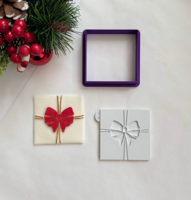Το Christmas present 3 αποτελείται από 1 cutter (κουπάτ) και μία ανάποδη σφραγίδα (debosser). Αρχικό μέγεθος 70x70mm.