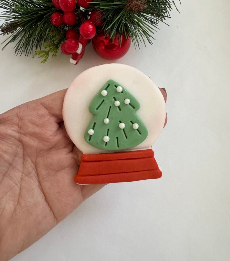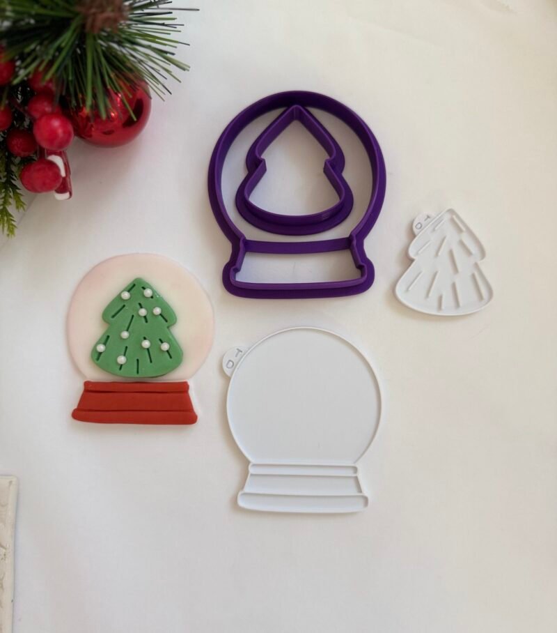 To Christmas snowglobe 2 αποτελείται από 2 cutters (κουπάτ) και 2 κανονικές σφραγίδες (embosser). Αρχικό μέγεθος 81x68mm.