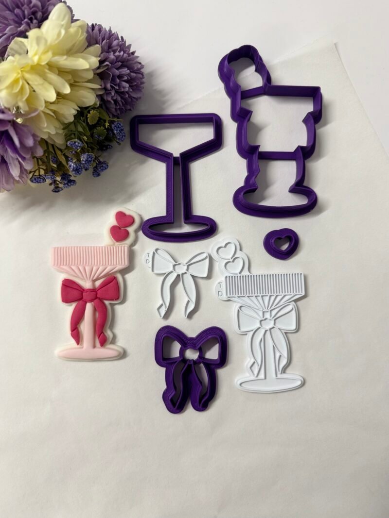 Το Glass with bow αποτελείται από 4 cutters (κουπάτ) και 2 κανονικές σφραγίδες (embosser). Αρχικό μέγεθος 112x64mm.