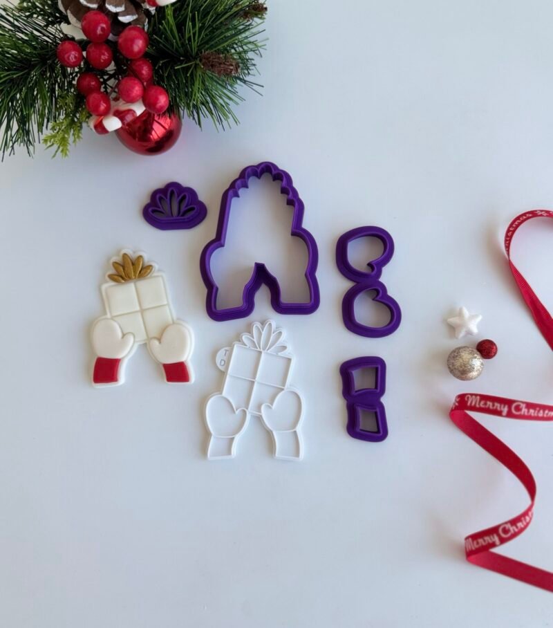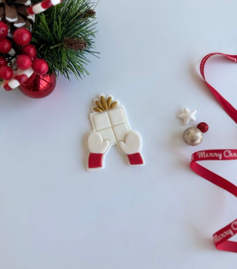 To Hands with gift αποτελείται από 4 cutters (κουπάτ) και μία κανονική σφραγίδα (embosser). Αρχικό μέγεθος 83x60mm.