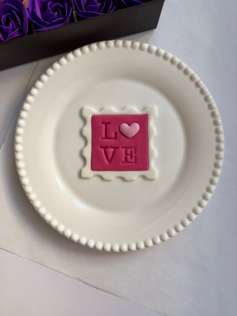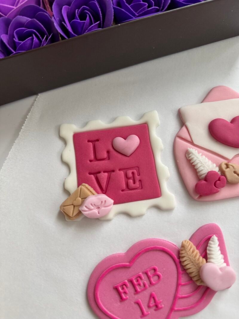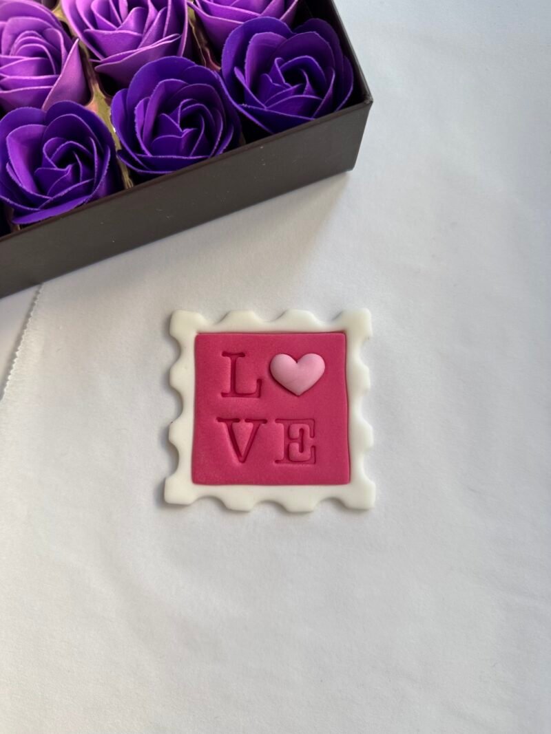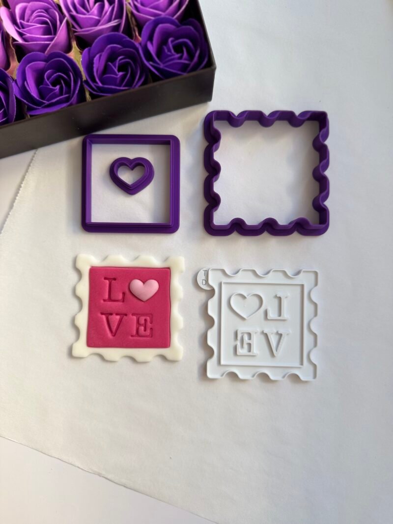 Το Love postage stamp αποτελείται από 3 cutters (κουπάτ) και μία κανονική σφραγίδα (embosser). Αρχικό μέγεθος 70x70mm.