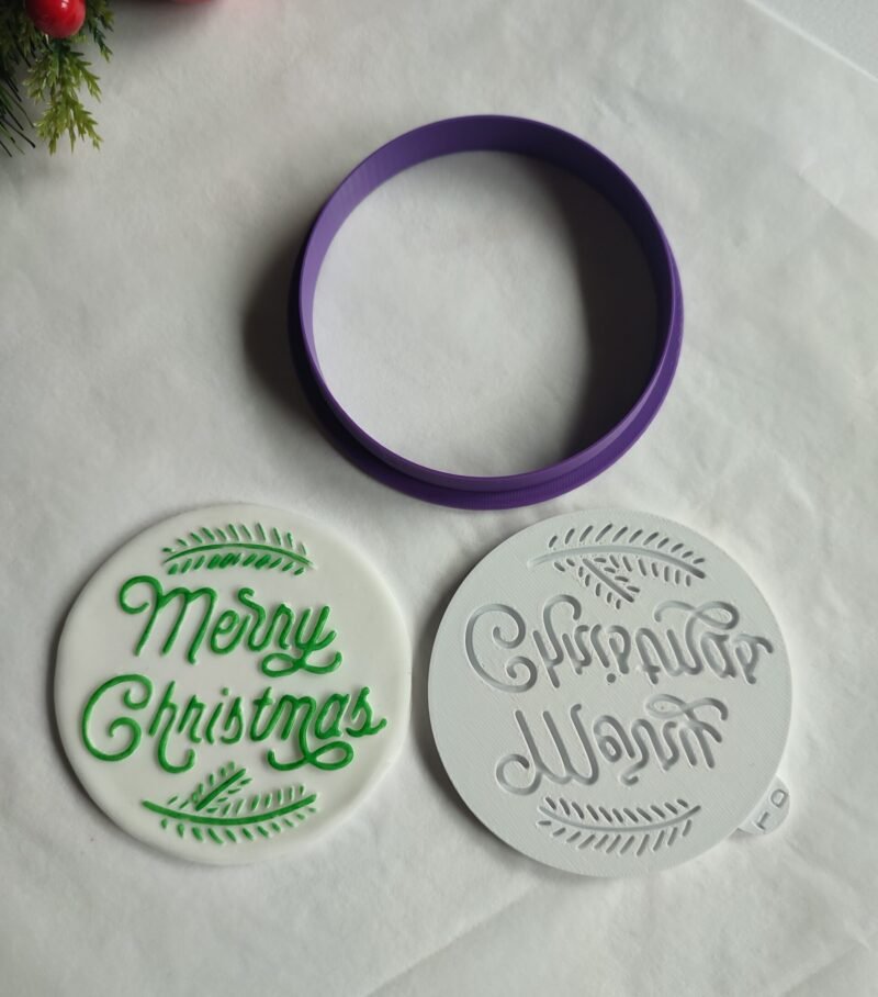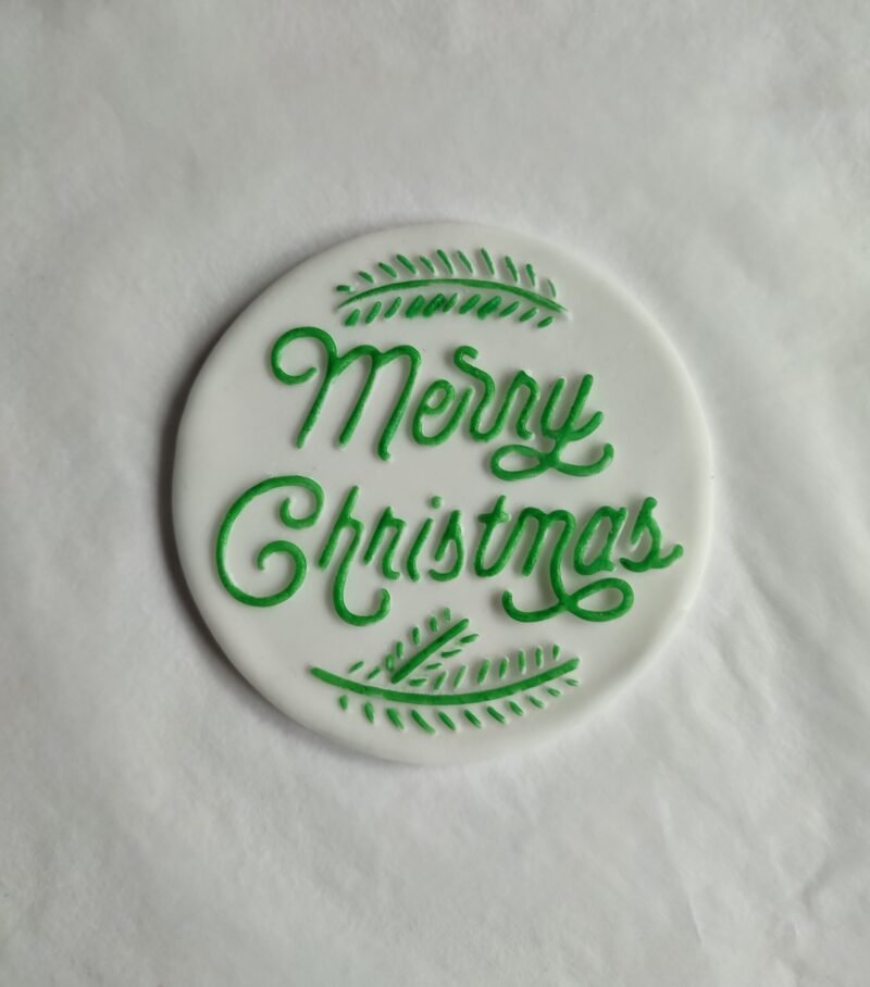 To Merry Christmas debosser αποτελείται από 1 cutter (κουπάτ) και μία ανάποδη σφραγίδα (debosser). Αρχικό μέγεθος 84x84mm.