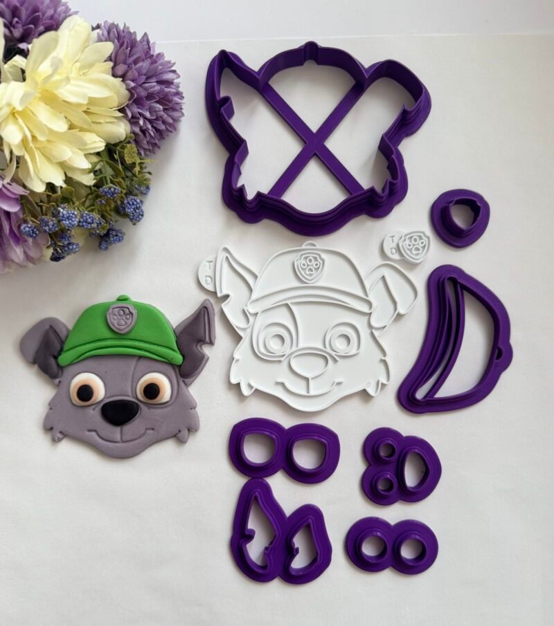 Το Paw Patrol Rocky αποτελείται από 7 cutters (κουπάτ) και 2 κανονικές σφραγίδες(embosser). Αρχικό μέγεθος 81x69mm.