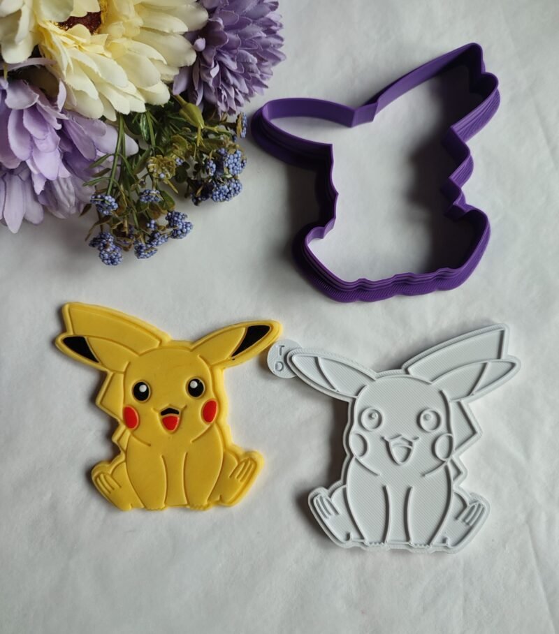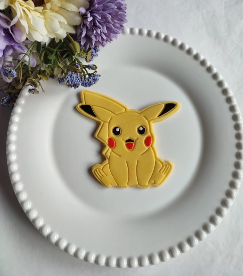 To Pikachu αποτελείται από 1 cutter (κουπάτ) και μία κανονική σφραγίδα (embosser). Αρχικό μέγεθος 88x84mm.