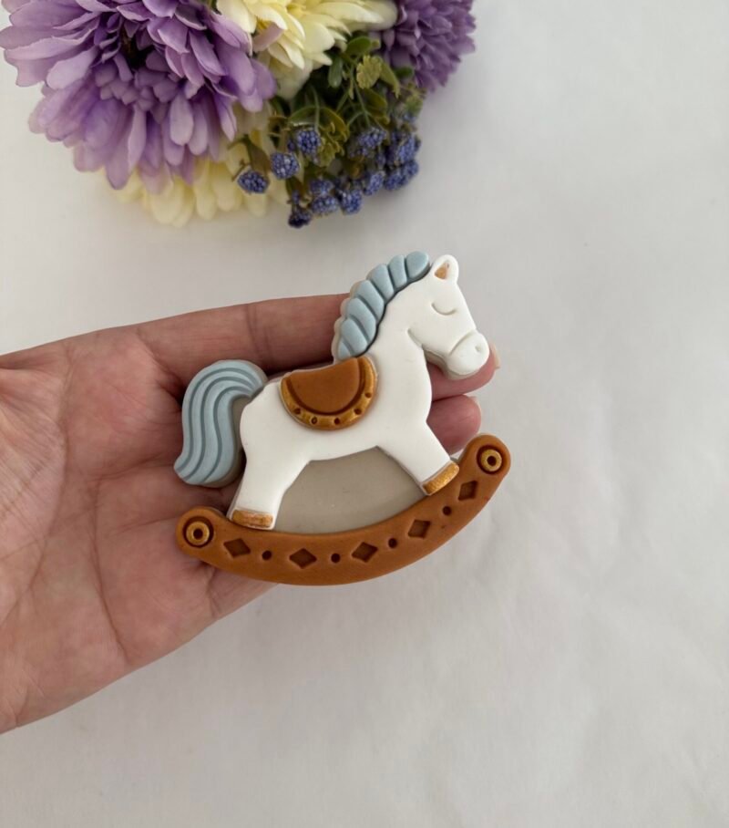 To Rocking horse 2 αποτελείται από 6 cutters (κουπ-πατ) και 1 κανονική σφραγίδα (embosser). To αρχικό μέγεθος είναι 80x73mm.