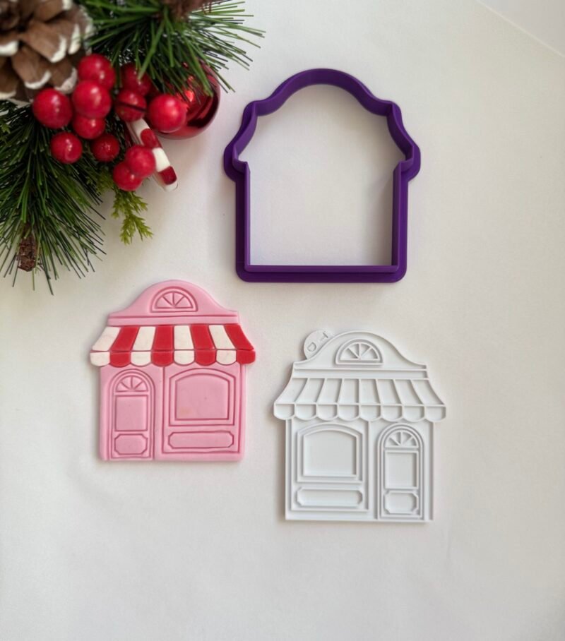 Το Shop αποτελείται από 2 cutters (κουπάτ) και μία κανονική σφραγίδα (embosser). Αρχικό μέγεθος 77x70mm.