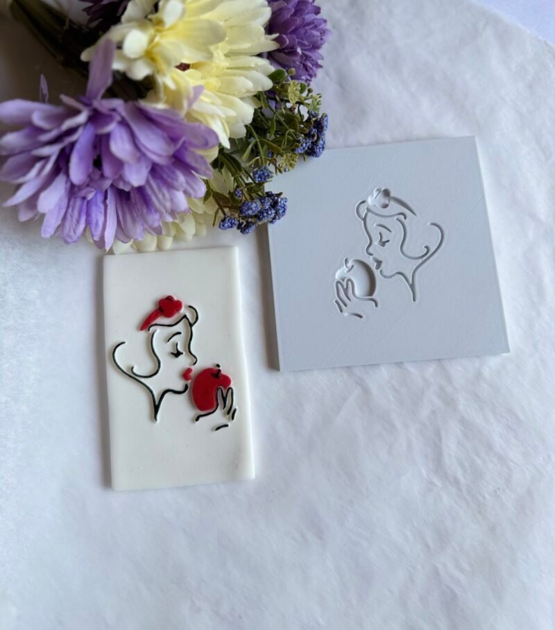 Το Snow White with apple είναι πλακάκι το οποίο χρησιμοποιείται όπως και η ανάποδη σφραγίδα (debosser). Μέγεθος 100x100mm (10cm).